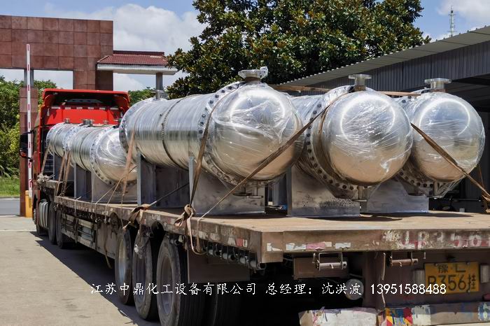 江蘇中鼎化工設(shè)備有限公司承接菏澤某普新材料有限公司的34臺列管式換熱器制造過程與發(fā)貨現(xiàn)場