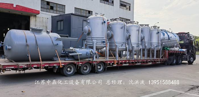 江蘇中鼎化工設(shè)備有限公司承接國內(nèi)某大型企業(yè)的一批 不銹鋼立式真空接收罐(帶外盤半管保溫)的槽罐即將啟程