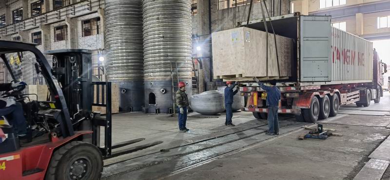 江蘇中鼎化工設(shè)備有限公司承接泰國(guó)某企業(yè)11臺(tái)列管式換熱器裝車包裝過程