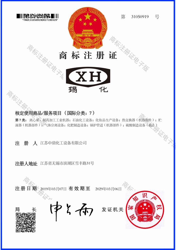 【中鼎喜訊】2019年4月8日經(jīng)過多年努力,中鼎企業(yè)終于拿到曾經(jīng)由1985年12月04日無錫縣化工設(shè)備廠注冊的“錫化”牌商標(biāo)的圖形商標(biāo),圓滿完成“錫化”老品牌的有效保護(hù)。為中鼎企業(yè)樹立品牌打下堅(jiān)實(shí)的基礎(chǔ)!
